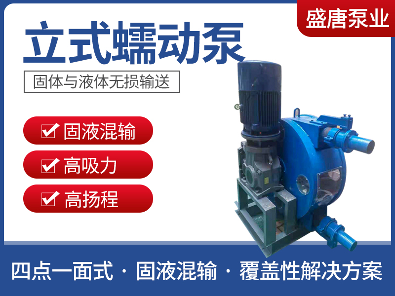 2、软管在泵体内呈U型,当回转架带动挤压轮回转时,软管受到挤压轮的积压发生弹性变形,在吸入口形成负压吸入浆料,通过挤压轮的推送浆料从排出口排出。
